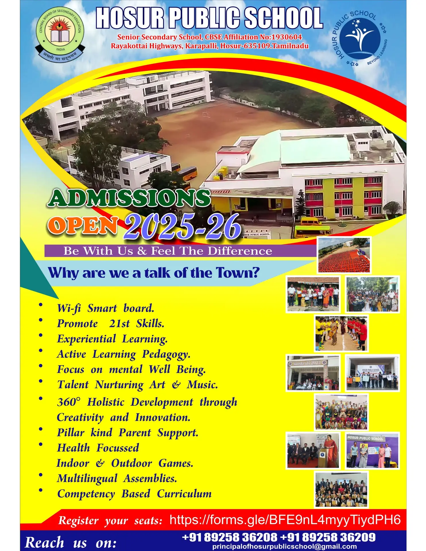 Admission to the school is mainly in LKG, Admission to other classes depends upon the vacancies that arise due to withdrawals. A child seeking admission in LKG should be 3.5 years old on or before 1st of June of the school year.
